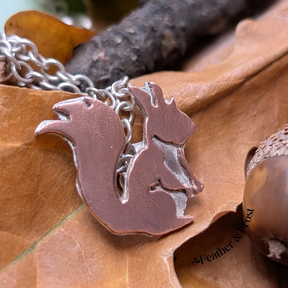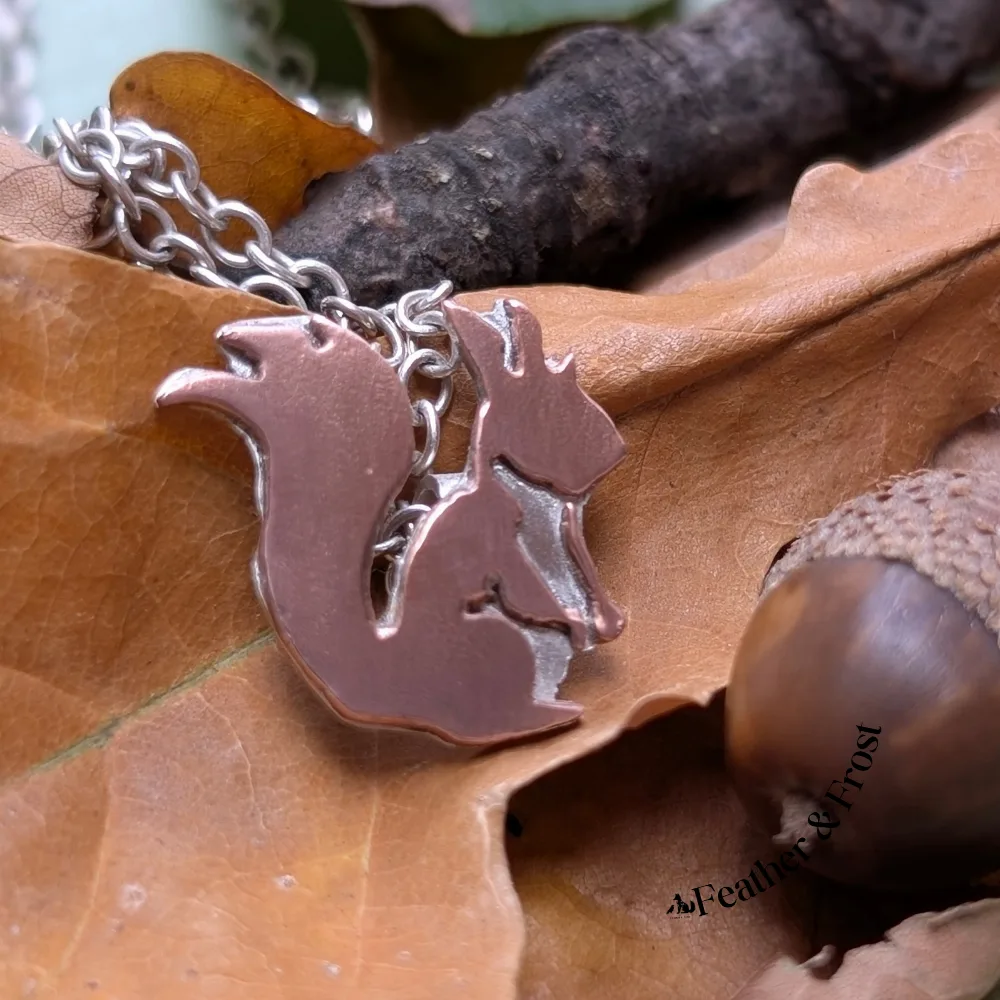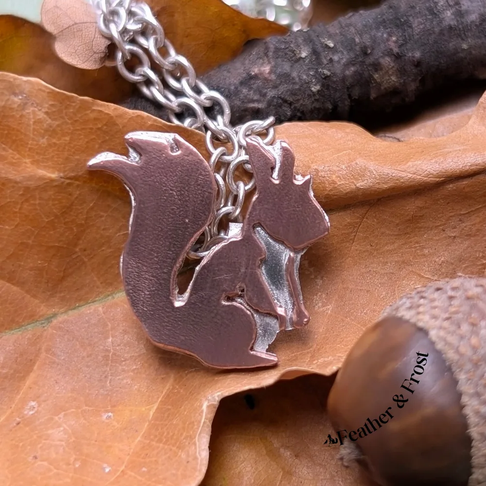 Copper & Sterling Silver Squirrel Pendant – Handmade Wildlife Jewellery UK