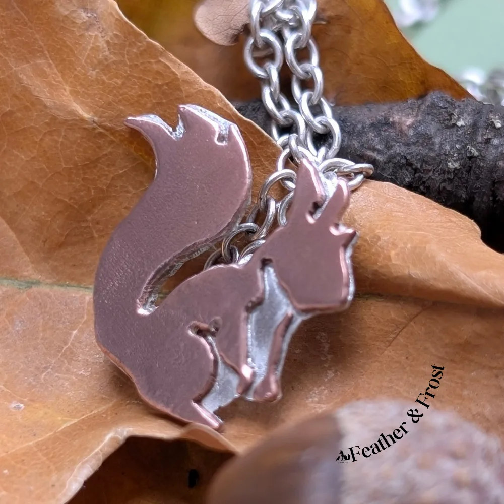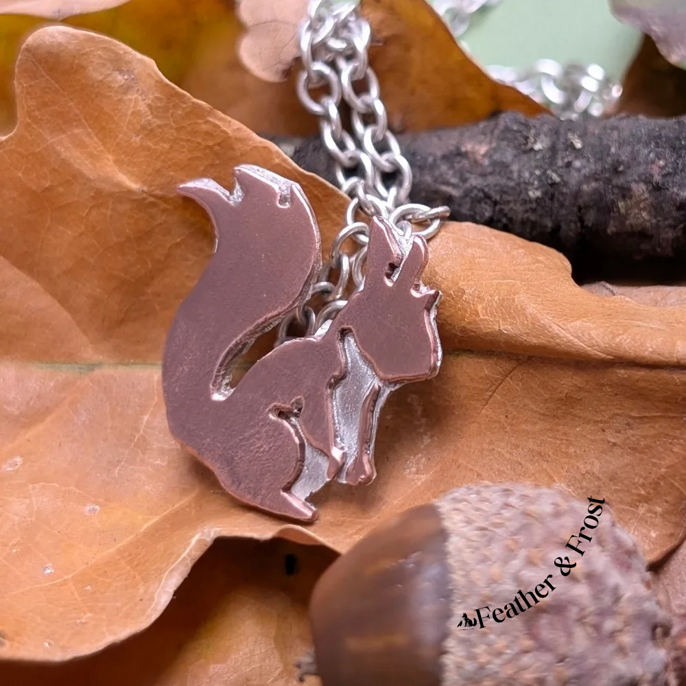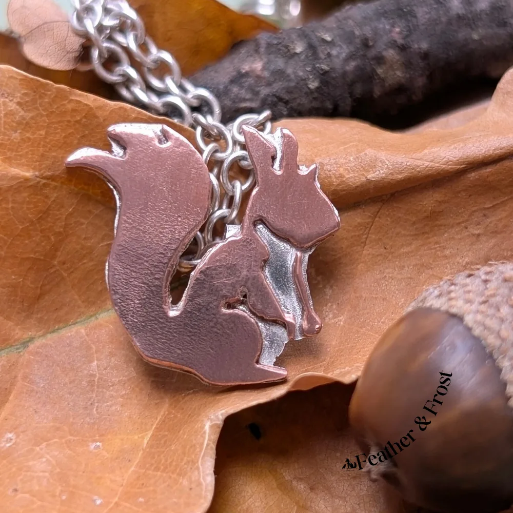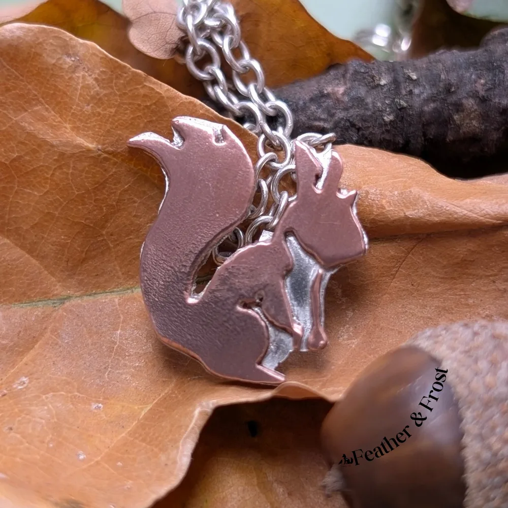 Copper & Sterling Silver Squirrel Pendant – Handmade Wildlife Jewellery UK