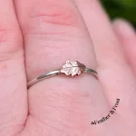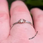 This delicate oak leaf ring is handmade with a warm copper leaf set on a slender band of recycled sterling silver. The tiny 7mm x 4mm leaf is lightly engraved to bring out its natural detail, making it perfect for everyday wear or stacking with my gemstone rings.