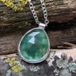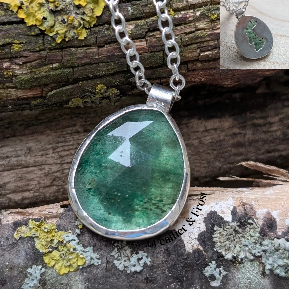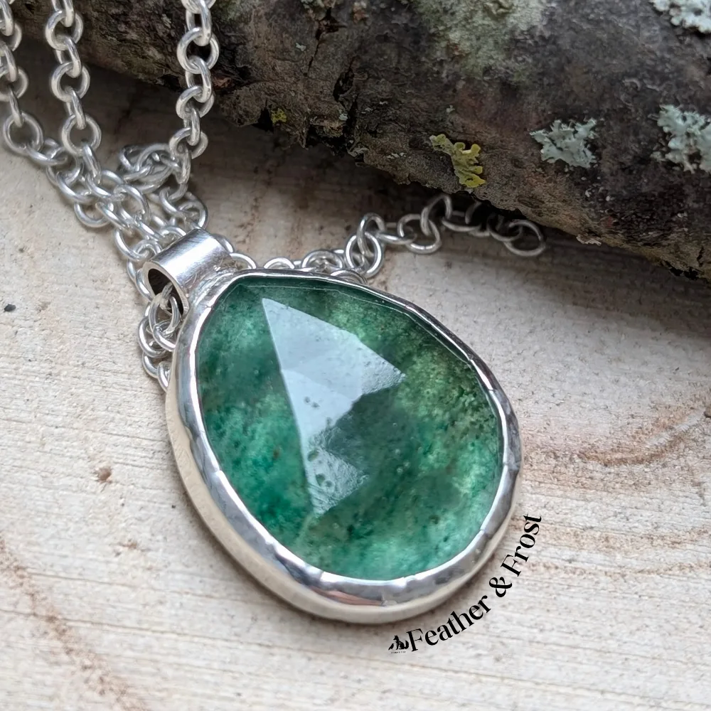 Soft as morning mist and vibrant as sunlit leaves, the Mosslight Charm captures the quiet magic of the forest. A rosecut green aventurine gemstone glows like moss in dappled light, cradled in sustainable sterling silver. Aventurine, the Stone of Opportunity, is said to bring luck, prosperity, and harmony—an amulet for those who follow hidden woodland paths and trust in serendipity.
